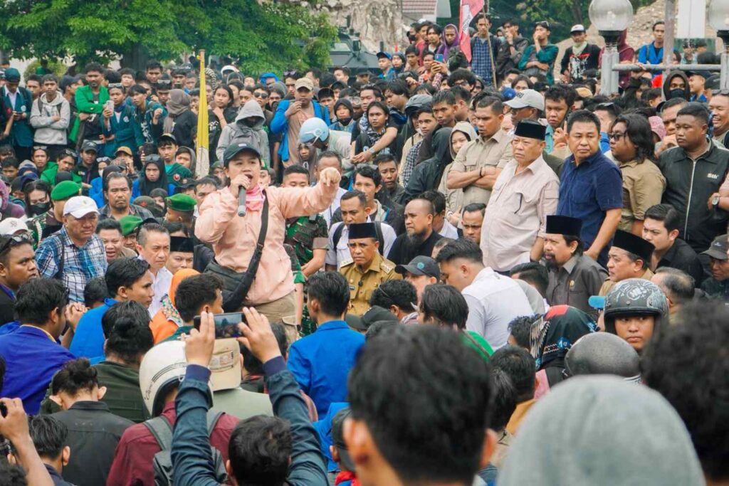 PALU,netiz.id — Ribuan massa aksi yang terdiri dari mahasiswa, pengemudi ojek online, dan masyarakat umum memadati halaman Kantor DPRD Sulawesi Tengah, Senin (01/09/25). Suasana tegang sempat mewarnai jalannya demonstrasi, namun berubah kondusif ketika pimpinan DPRD Sulteng turun langsung menemui para demonstran.