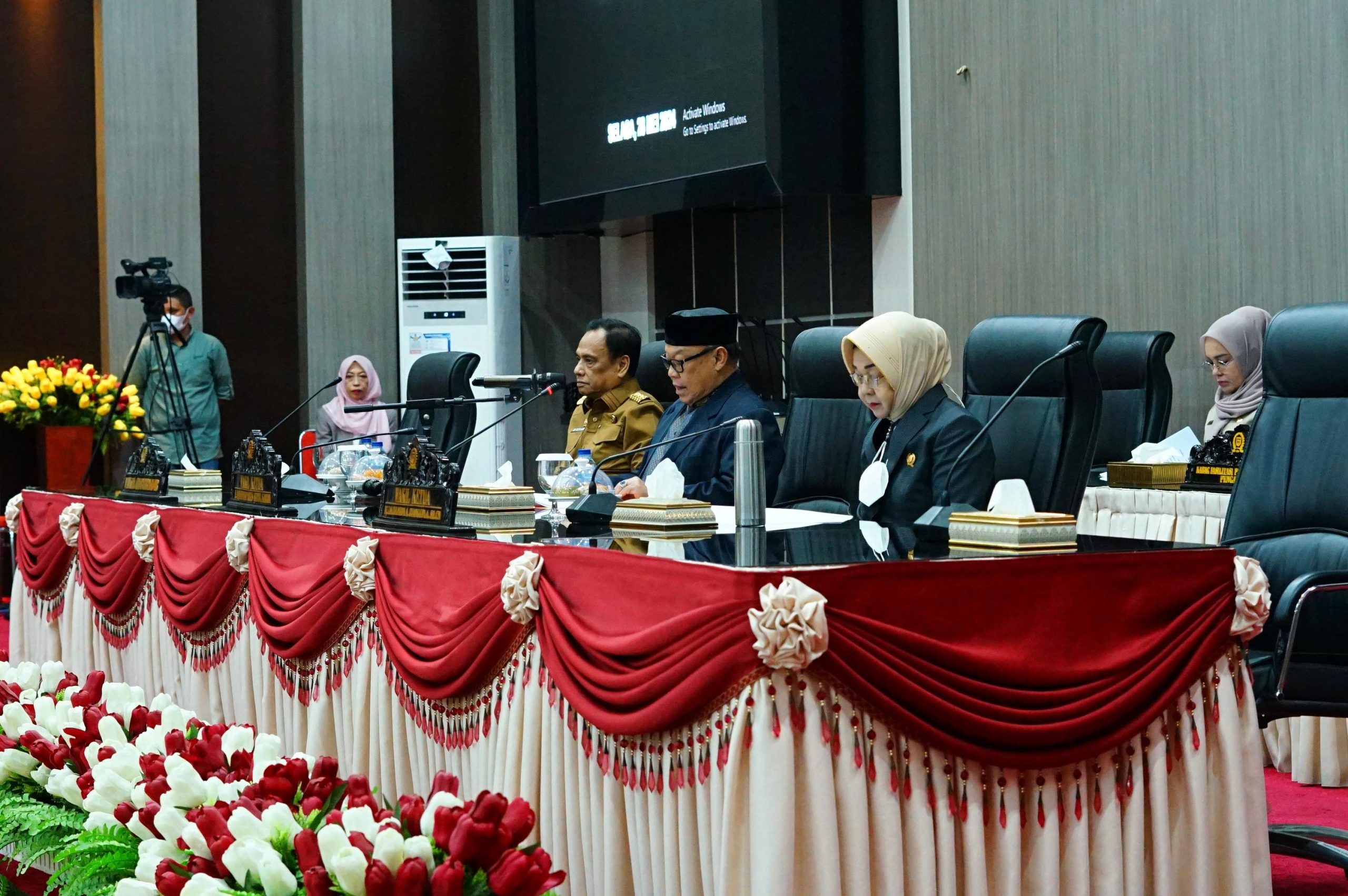 Dalam rapat, Wakil Ketua I DPRD Sulteng, H. Mohammad Arus Abdul Karim, menyampaikan pandangan Gubernur Sulteng atas tanggapan fraksi-fraksi DPRD terhadap Ranperda RPJPD 2025-2045.