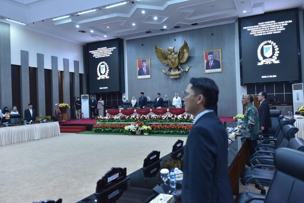 PALU,netiz.id – DPRD Sulawesi Tengah (Sulteng) melangsungkan rapat paripurna pada Senin kemarin (27/05/24). Rapat tersebut menandai penutupan masa persidangan II tahun kelima dan dibuka masa persidangan III tahun kelima DPRD Sulteng periode 2019-2024. Ruang Sidang Utama DPRD Sulteng.