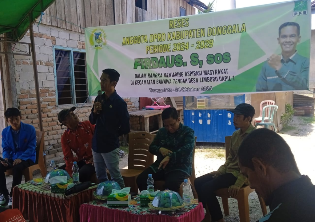 DONGGALA,netiz.id – Anggota DPRD Donggala Daerah Pemilihan 1, Firdaus, melaksanakan kegiatan Reses Masa Sidang III tahun 2024 di Desa Limboro, Kecamatan Banawa Tengah, pada Jumat (25/10/24). Kegiatan ini bertujuan untuk menyerap aspirasi masyarakat setempat dan dihadiri oleh Camat Banawa Tengah, Rahmadi, serta tokoh masyarakat dan warga.