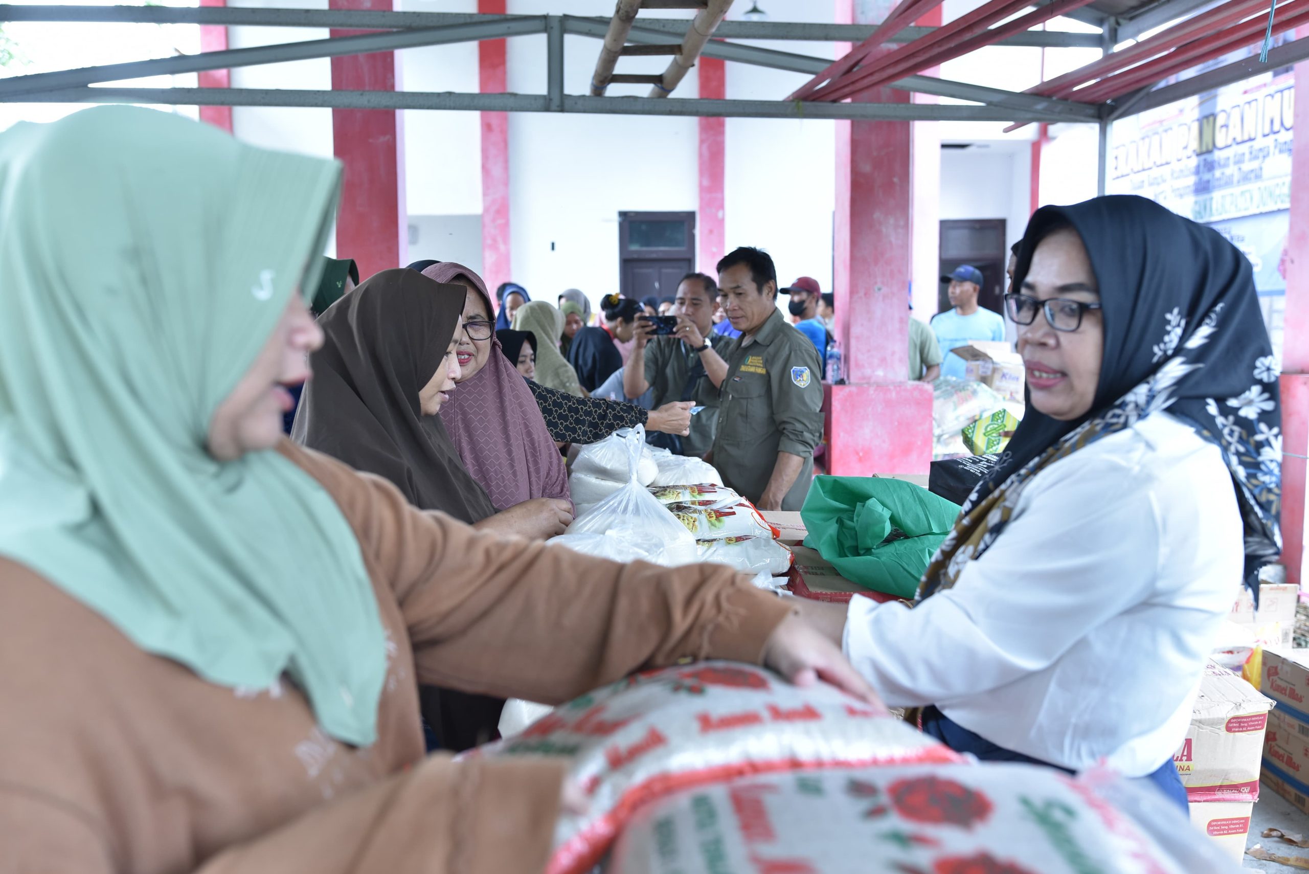Antusiasme warga terlihat jelas sejak pagi hari. Mereka rela mengantri panjang untuk mendapatkan bahan pokok seperti beras, minyak goreng, gula, dan telur yang dijual dengan harga jauh lebih murah dibandingkan harga pasaran.