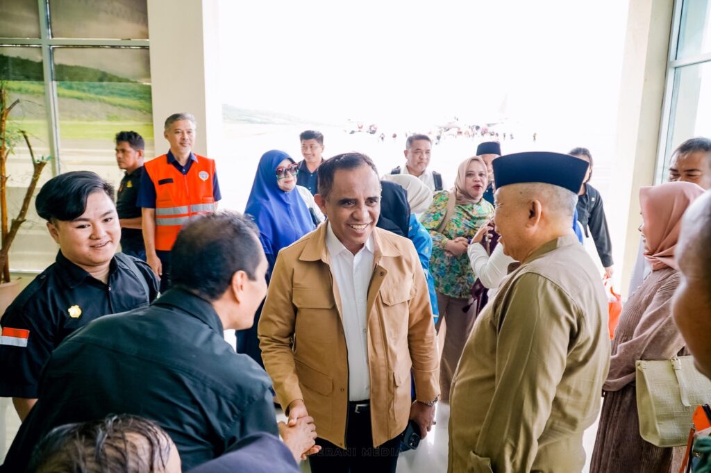 Gubernur Sulawesi Tengah, Dr. H. Anwar Hafid, disambut hangat oleh jajaran Pemerintah Kabupaten Banggai setibanya di Bandara Syukuran Aminuddin Amir, Luwuk, Minggu (08/06/25). FOTO: istimewa