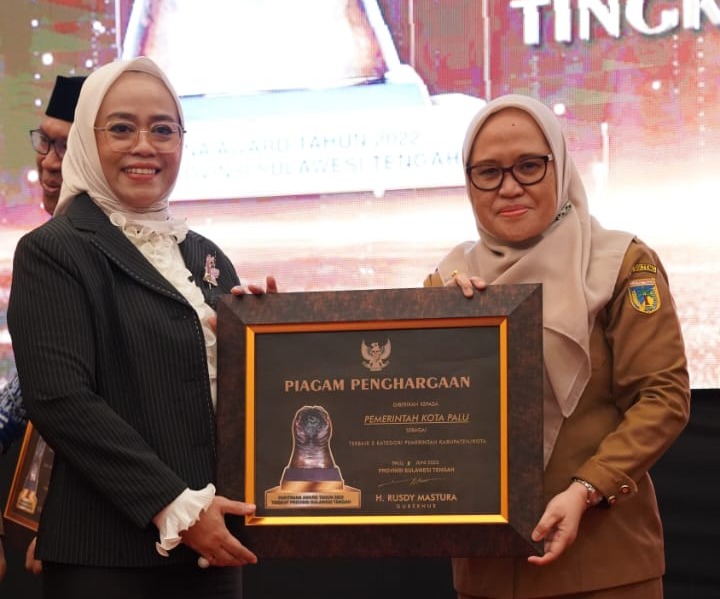 Sekretaris Daerah Kota Palu, Irmayanti Pettalolo, S.Sos.,MM, secara langsung menerima penghargaan tersebut dari Sekretaris Daerah Provinsi Sulawesi Tengah, Novalina, MM.