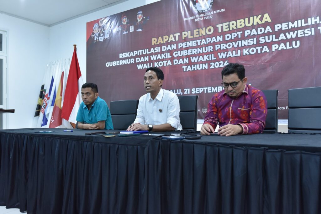 PALU,netiz.id – Komisi Pemilihan Umum (KPU) Kota Palu secara resmi telah menetapkan tiga pasangan calon (Paslon) untuk pemilihan Wali Kota dan Wakil Wali Kota pada Pilkada 2024. Penetapan ini dilakukan setelah berlangsungnya rapat pleno tertutup pada Minggu, (22/09/24). Pemilihan akan dilaksanakan pada 27 November 2024.