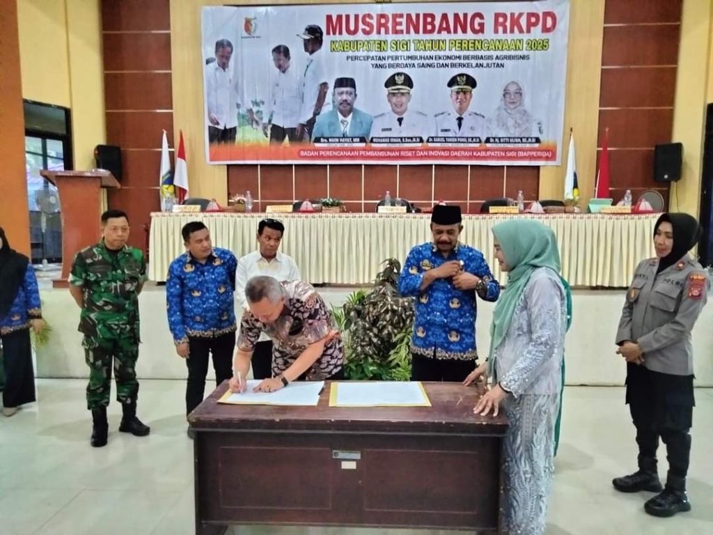 Acara dilanjutkan dengan penandatanganan kerja sama Rencana Kerja Pemerintah Daerah (RKPD) 2025 dan diskusi bersama para peserta Musrenbang. (TIM)