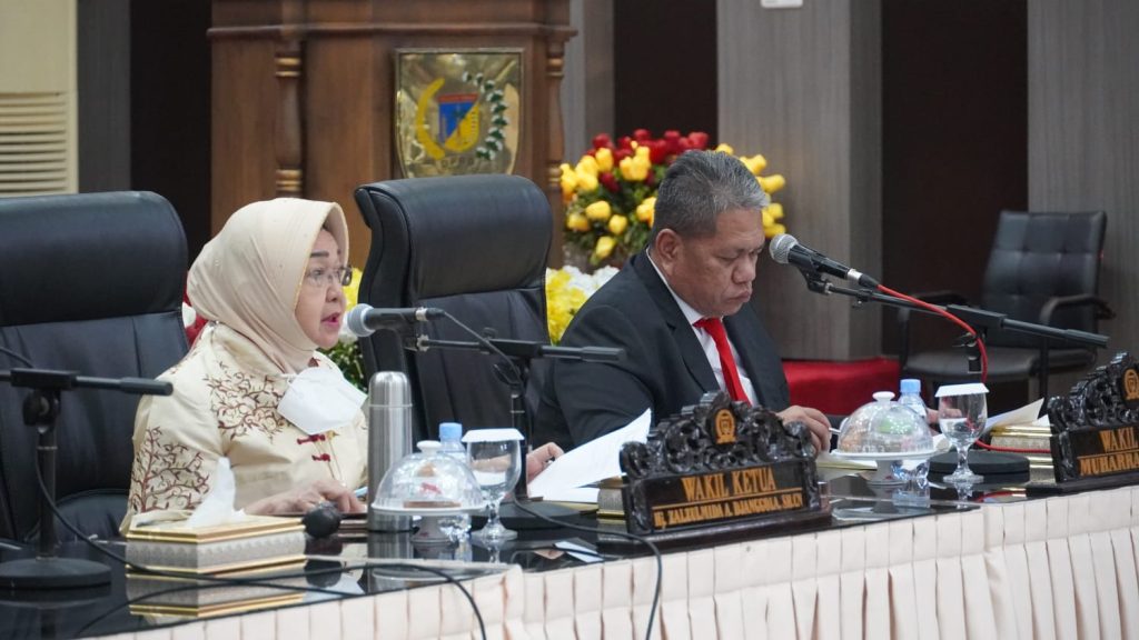 Rapat paripurna tersebut dipimpin oleh Wakil Ketua-II DPRD Provinsi Sulteng, Hj. Zalzulmida A. Djanggola, SH, CN, dan dihadiri oleh Wakil Ketua-III DPRD Provinsi Sulteng, H. Muharram Nurdin, S. Sos, M. Si, serta anggota DPRD Provinsi Sulteng. Hadir pula Dr. Fahrudin D. Yambas, Asisten-I Pemda Sulteng yang mewakili gubernur Sulteng, unsur Forkopimda Sulteng, kepala OPD Lingkup Pemda Sulteng, dan undangan khusus.