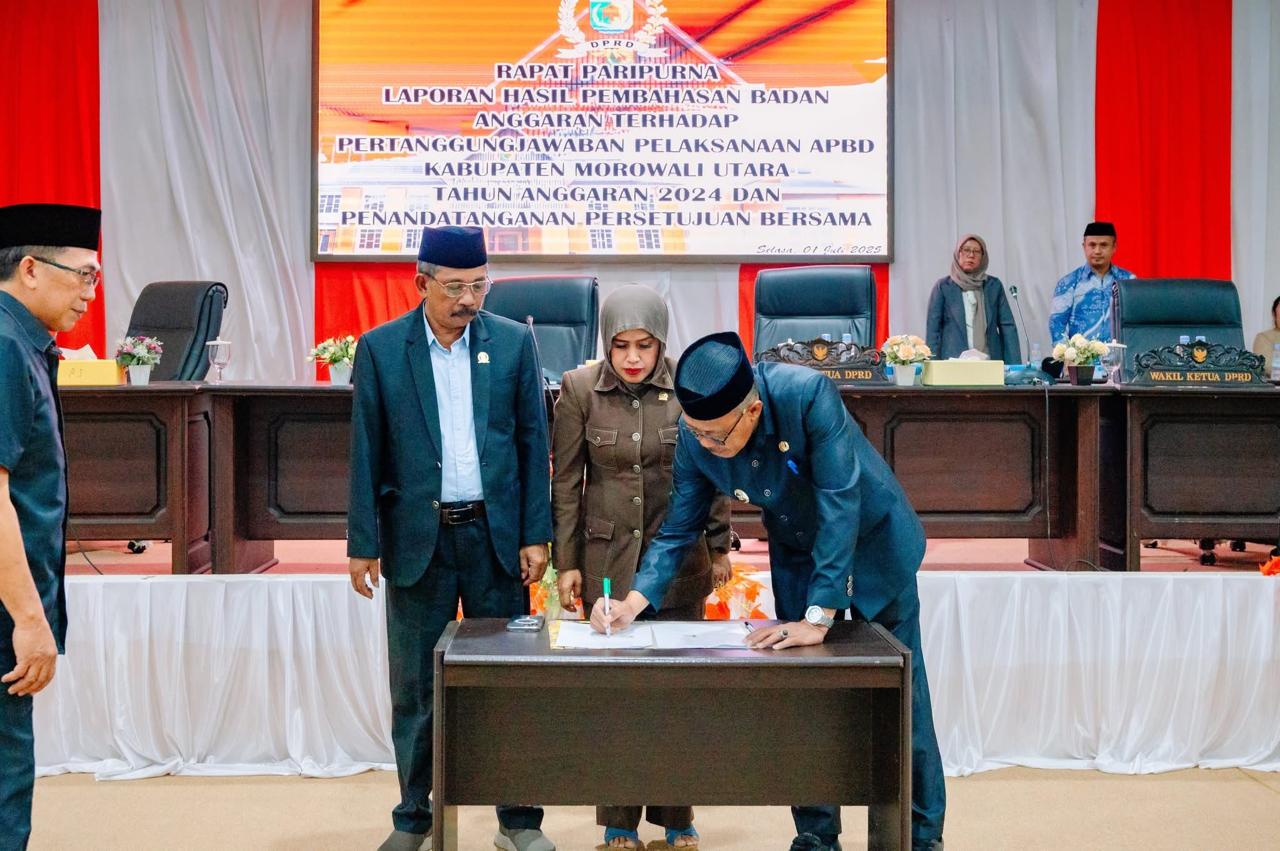 Rapat paripurna ditutup dengan penandatanganan persetujuan bersama atas Rancangan Pertanggungjawaban Pelaksanaan APBD TA 2024. (KB/*)