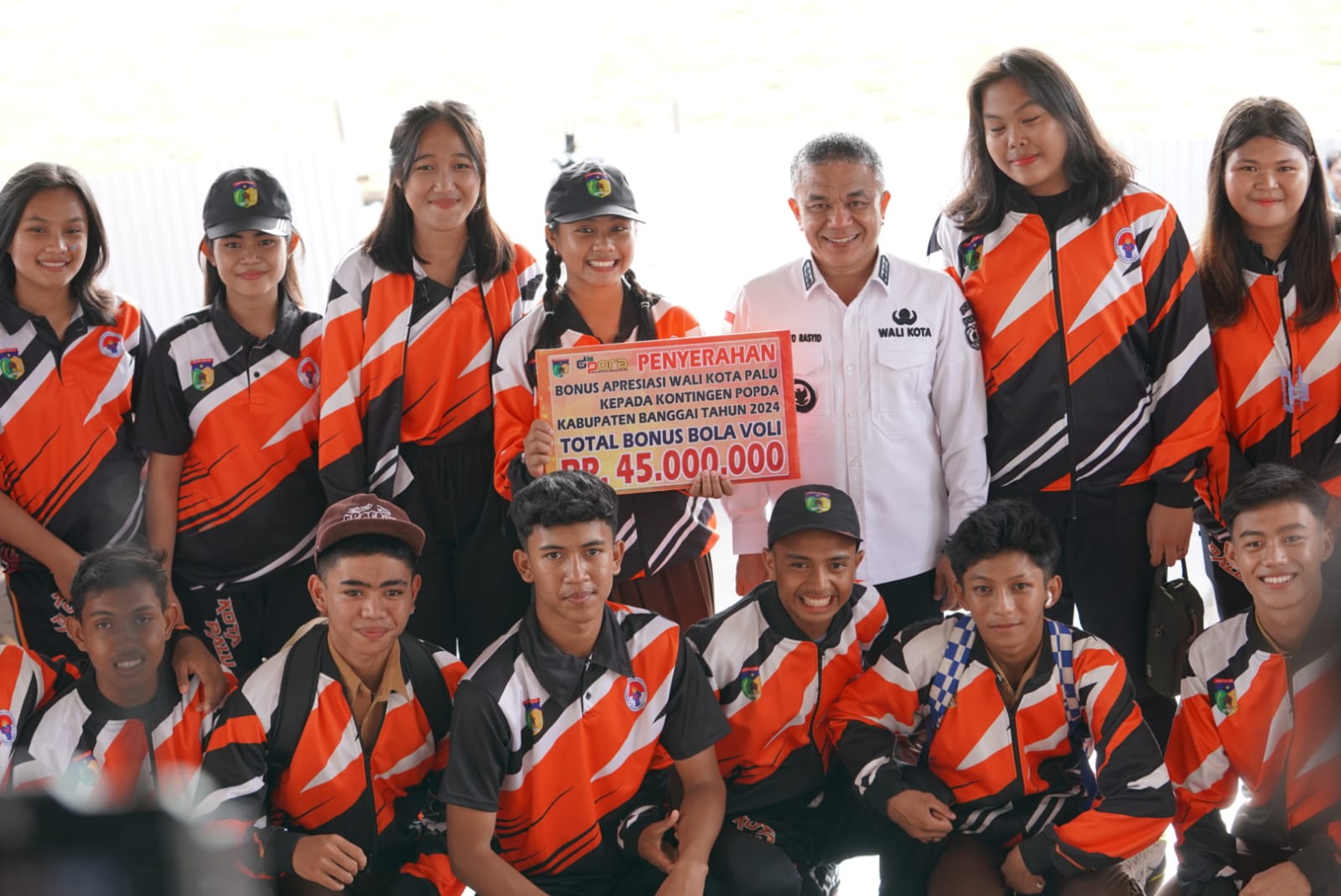 PALU,netiz.id — Wali Kota Palu, H. Hadianto Rasyid, memberikan apresiasi kepada Kontingen Pekan Olahraga Pelajar Daerah (POPDA) Kota Palu dalam sebuah acara simbolis di halaman Kantor Wali Kota Palu pada Rabu (28/08/24). Pemberian bonus ini dilakukan sebagai penghargaan atas prestasi gemilang yang diraih oleh kontingen Kota Palu dalam ajang POPDA tingkat Provinsi Sulawesi Tengah.