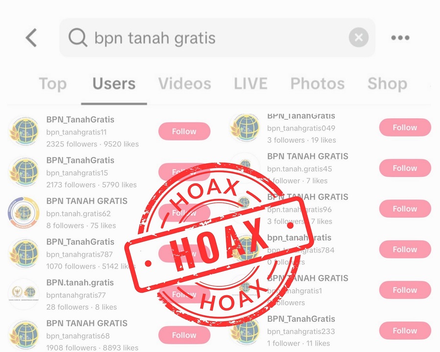 “Kami melihat banyak sekali akun TikTok @bpn_tanahgratis beredar. Untuk itu, masyarakat diimbau tidak percaya pada akun tidak resmi yang menyebarkan klaim palsu. Informasi dan layanan resmi hanya bisa diperoleh melalui situs atrbpn.go.id dan akun media sosial resmi ATR/BPN,” tegas Harison di Jakarta, Selasa (19/08/25).