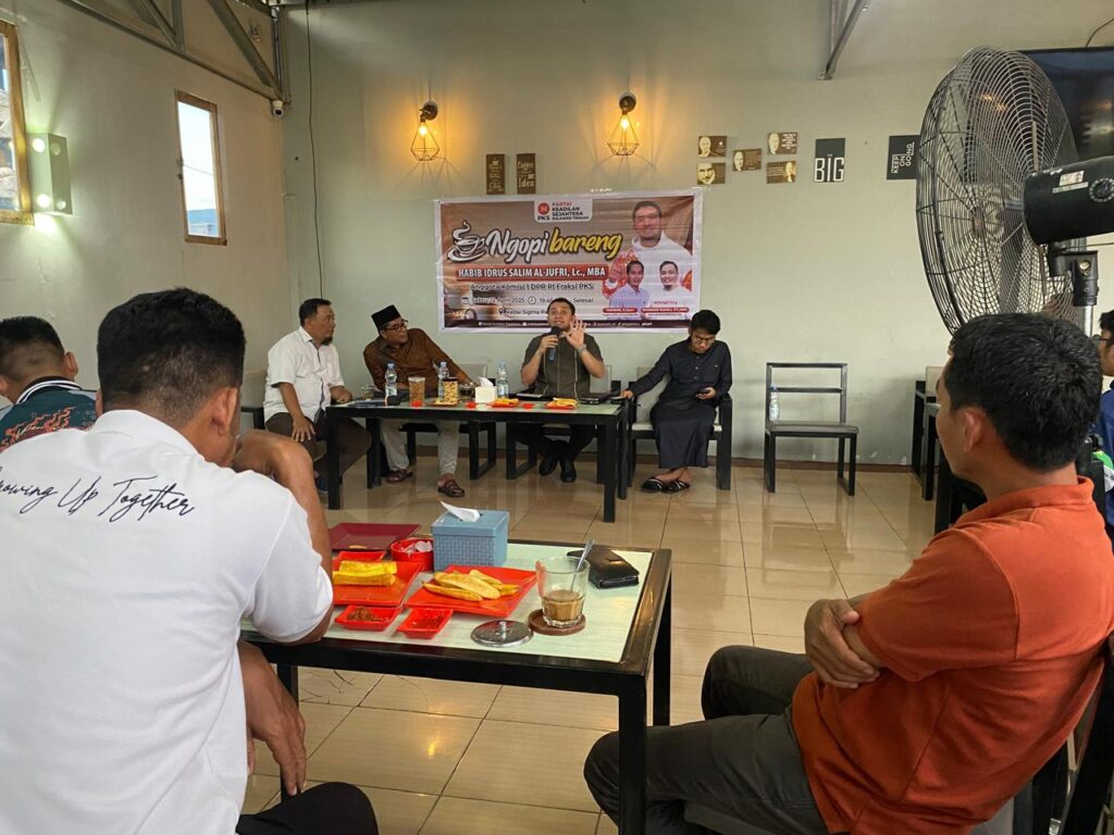 Anggota DPR RI sekaligus Anggota Komisi I dari Fraksi PKS, Habib Idrus Salim Al-Jufri saat ngopi bareng dengan pengurus DPW serta Anggota DPRD Sulteng. FOTO: netiz.id