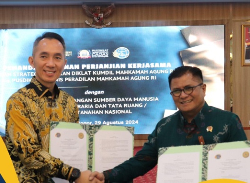 KABUPATENBOGOR,netiz.id – Kementerian Agraria dan Tata Ruang/Badan Pertanahan Nasional (ATR/BPN) melalui Pusat Pengembangan Sumber Daya Manusia (PPSDM) telah menjalin kerja sama dengan Pusat Pendidikan dan Pelatihan Teknis Peradilan Mahkamah Agung (MA) untuk memperkuat kapasitas hakim dalam menangani perkara pertanahan dan tata ruang. Penandatanganan Perjanjian Kerja Sama dilakukan di Aula Badan Litbang Diklat Kumdil MA, Megamendung, Kabupaten Bogor, pada Kamis (29/08/24)