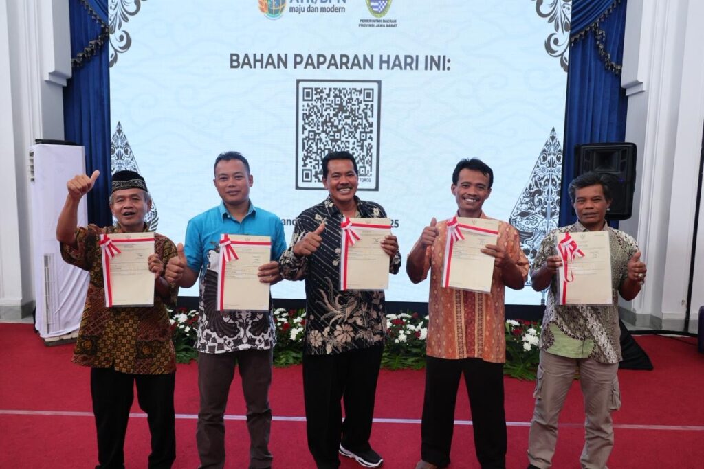 Sertipikat tersebut diserahkan langsung oleh Menteri Agraria dan Tata Ruang/Kepala Badan Pertanahan Nasional (ATR/BPN), Nusron Wahid, bersama Gubernur Jawa Barat, Dedi Mulyadi, kepada perwakilan warga dalam kegiatan yang digelar di Gedung Sate, Bandung, Kamis (18/12/25).
