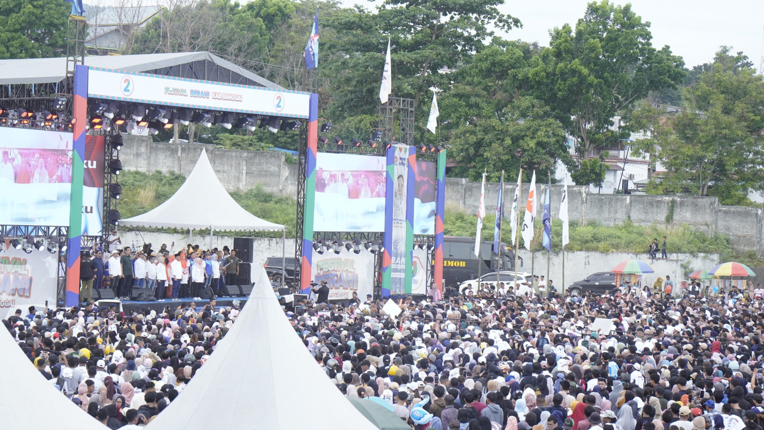 LUWUK,netiz.id – Kampanye akbar pasangan calon Gubernur dan Wakil Gubernur Sulawesi Tengah nomor urut 2, Anwar Hafid dan dr. Reny Lamadjido, berlangsung meriah di Stadion Gelora Kilongan Permai, Luwuk, pada Sabtu (26/10/24). Ribuan warga dari berbagai penjuru Kabupaten Banggai memadati stadion sejak pagi, menunjukkan antusiasme yang tinggi untuk mendukung pasangan yang dikenal dengan sebutan BERANI (Bersama Anwar-Reny).